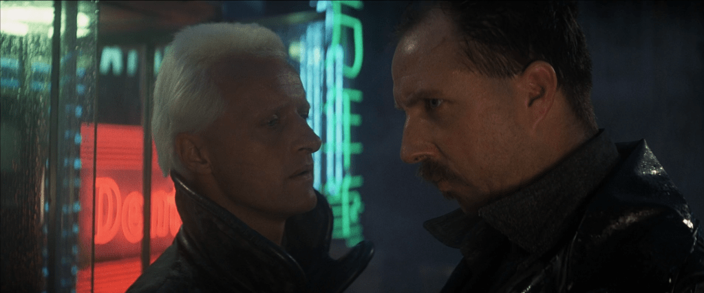 «Vas a tener que irte, o te tendré que matar». «Ir al infierno, ir al Cielo», le grita a Deckard. «Así me gusta», le dice cuando Deckard lo golpea con una barra. Roy se debate sobre hacia dónde ir, y por momentos también intenta provocar a Deckard, como esperando que también dude entre el bien y el mal.