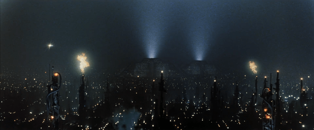 Que Tyrrell sólo pudiera crear a alguien igual de inteligente que él pero no más, o que tenga que atenerse a leyes físicas («la luz que brilla con el doble de intensidad dura la mitad», dice, es decir, conservación de la energía), quiere decir que hay un límite a lo que el ser humano puede crear a través de la tecnología. Que no es Dios. Al presentarnos a Tyrrell como un poderoso obsesionado en la torre de marfil que es su pirámide truncada, nos dice que el sistema da pie a seres humanos monstruosos que sin darse cuenta provocan un sufrimiento indecible a otros. Más personas son arrastradas en ese edificio del sistema, como JF Sebastian. La vida de esos otros seres que crea sólo pueden dignificarla los propios replicantes, tal vez con ayuda de algo o alguien que opera desde un nivel superior, aunque eso no lo sabemos.